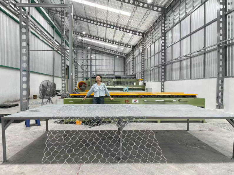 Both gabion boxes and mattresses are manufactured using a gabion box machine. This industrial machine twists or welds steel wires into hexagonal or rectangular mesh patterns and cuts them into specific panel sizes.