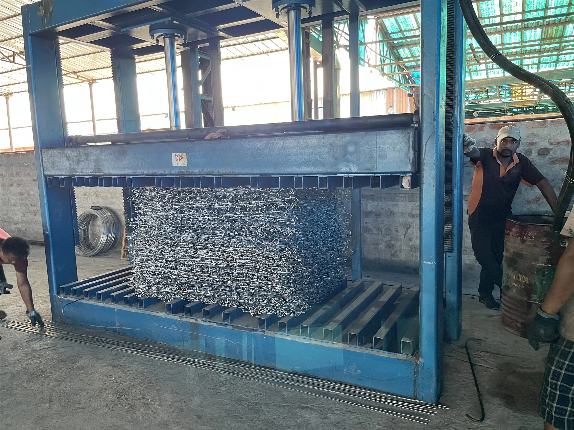 The gabion‑packing‑machine is an essential finishing unit for any gabion mesh production line, and its advantages are immediately evident when comparing to older, manual packing methods. One of the standout benefits is its ability to dramatically reduce shipping volume: by compressing collapsed gabion boxes into a smaller footprint, transportation costs go down and storage space requirements shrink. In fact, models equipped with a dual‑cylinder configuration allow the machine to save up to 5%‑10% of packing space compared to single‑cylinder machines.