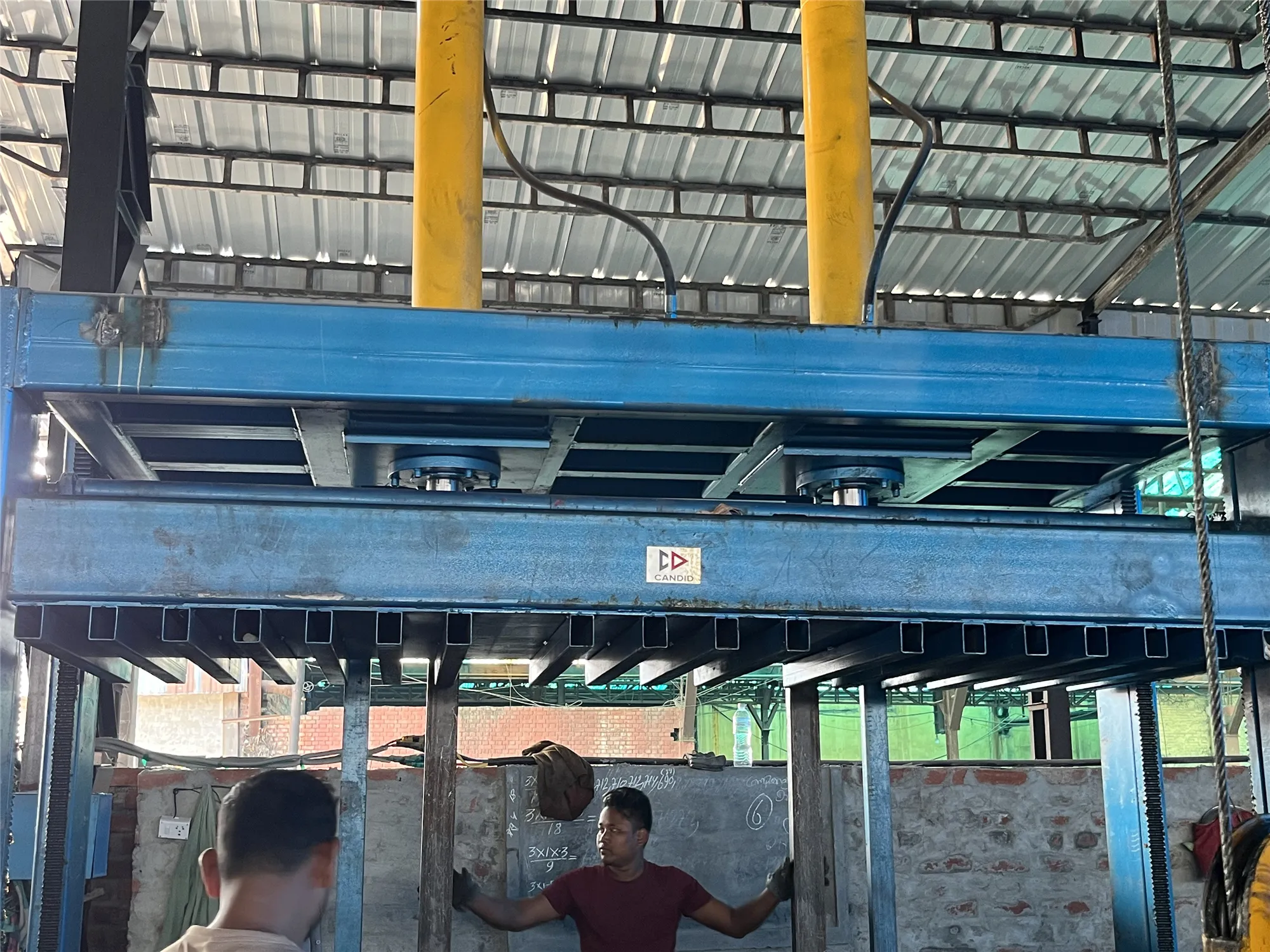 CANDID gabion packing machine is the auxiliary machine for gabion mesh production line, which is used for pressing the gabion box to smaller size and reduce the cost for transportation. Our gabion packing machine adopt double cylinder type, which is more efficiency and balance when working. Usually one package gabion box is 100 pieces, our gabion packing machine can pressing it around 900-1000mm height (single cylinder is around 1200-1300mm).